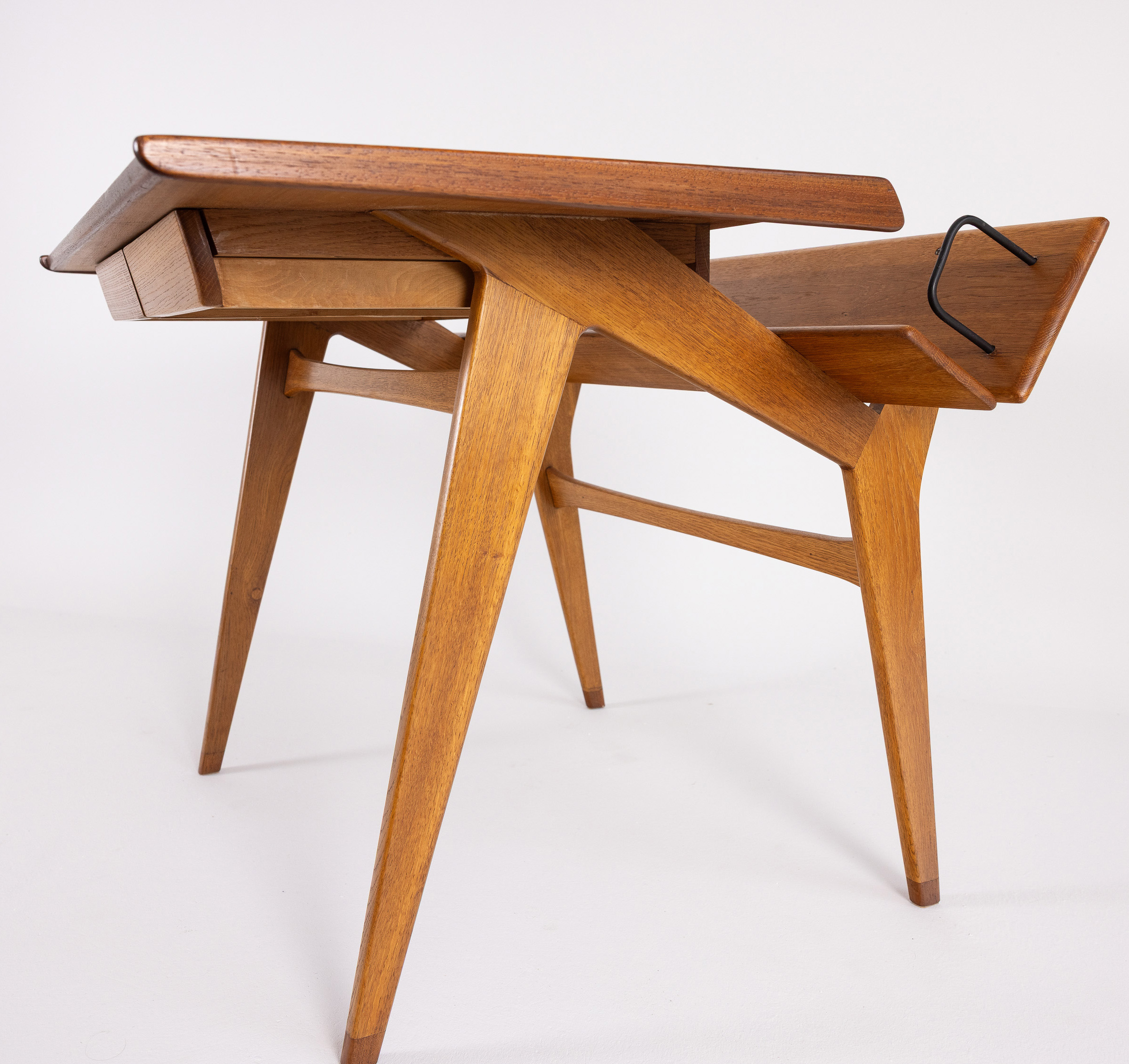Schreibtisch von Marcel Gascoin, Teak/ Eiche